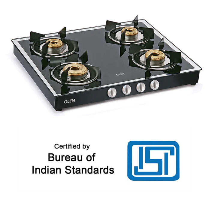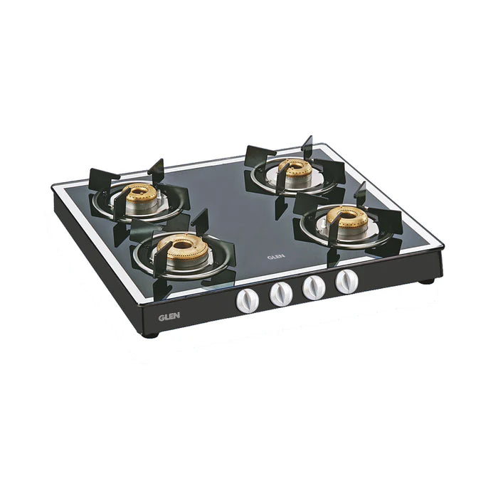4 Burner Glass Gas Stove Mirror Finish 1 High Flame 3 Forged Brass Burner 60 CM Black (1042 GT FBM BL)